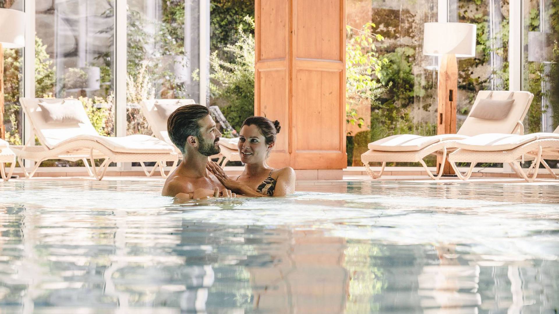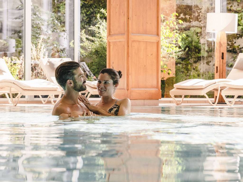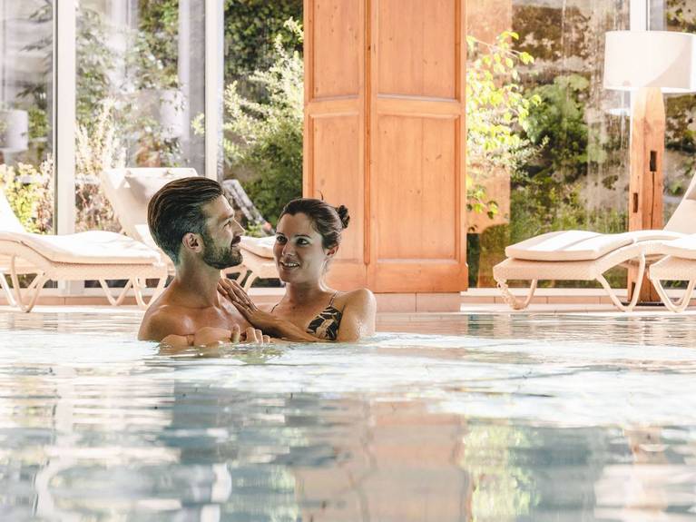 Auf 1 000 m² lädt unser Poolbereich mit Gegenstromanlage, Wasserschwall und der 35 °C warmen Whirlgrotte zum Entspannen ein – ideal für ein Yoga-Wellness-Wochenende in den Bergen. Die komfortablen Ruhe- und Massageliegen bieten sich dabei perfekt zum Ausruhen nach einer Einheit in unserem Fitnessstudio an. Dort stehen Ihnen auf 60 m² hochmoderne Fitnessgeräte für ein optimales Ganzkörpertraining zur Verfügung: Laufband, Crosstrainer, Fahrrad, Hanteln und Kraftgeräte. Im Anschluss bringen Sie den Geist in unserem Wellnesshotel mit Meditation wieder in vollkommene Harmonie.