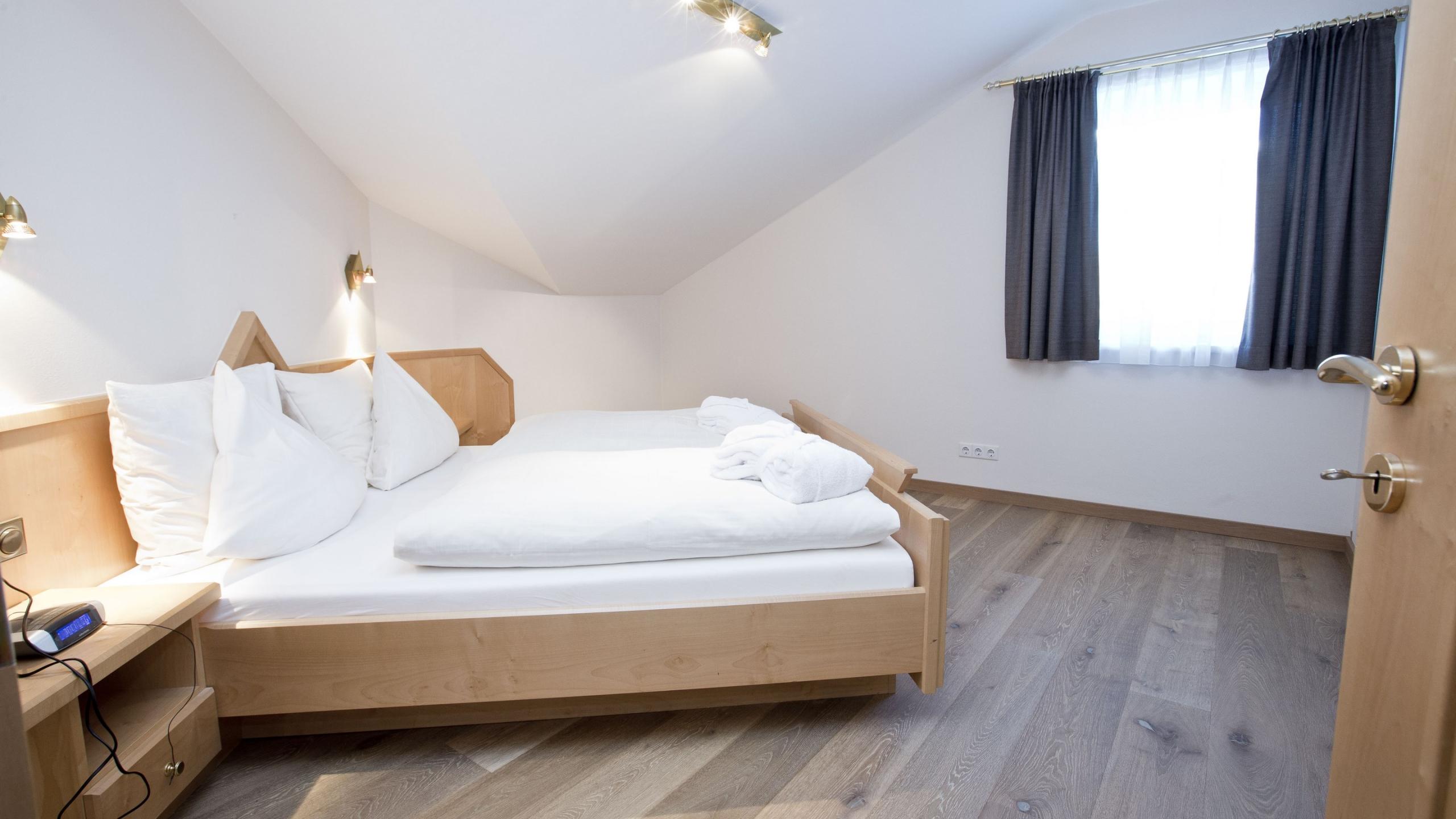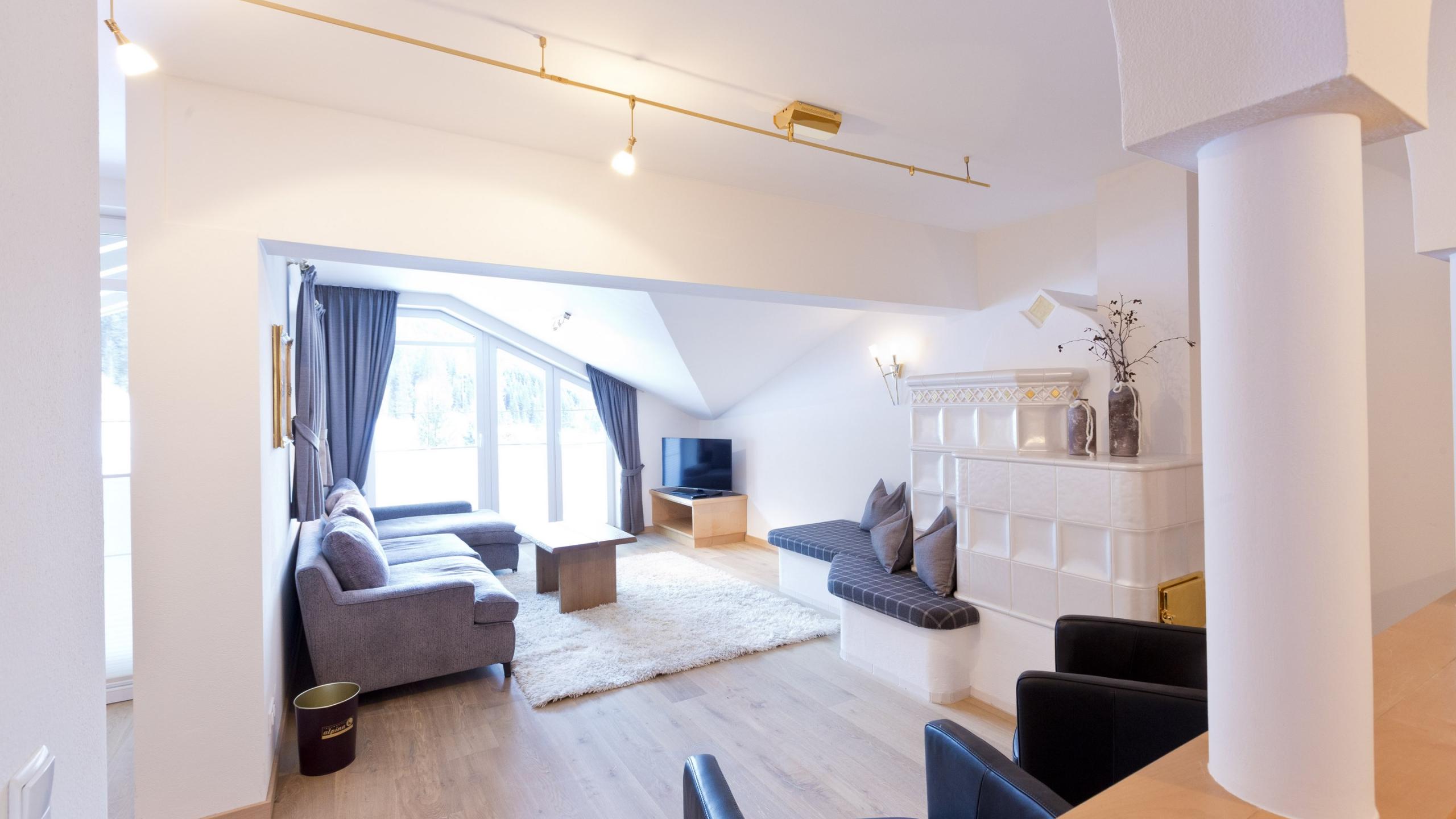 Modern ausgestattetes Penthouse mit Holzboden, 3 Schlafzimmern, separatem Wohnzimmer mit Sitzecke und Kachelofen, mehreren Balkonen, begehbarem Schrank, TV, Minibar, Telefon und Safe. Badezimmer mit Badewanne und separatem WC. Mindestbelegung: 3 Personen (4 Personen während der Wintersaison)