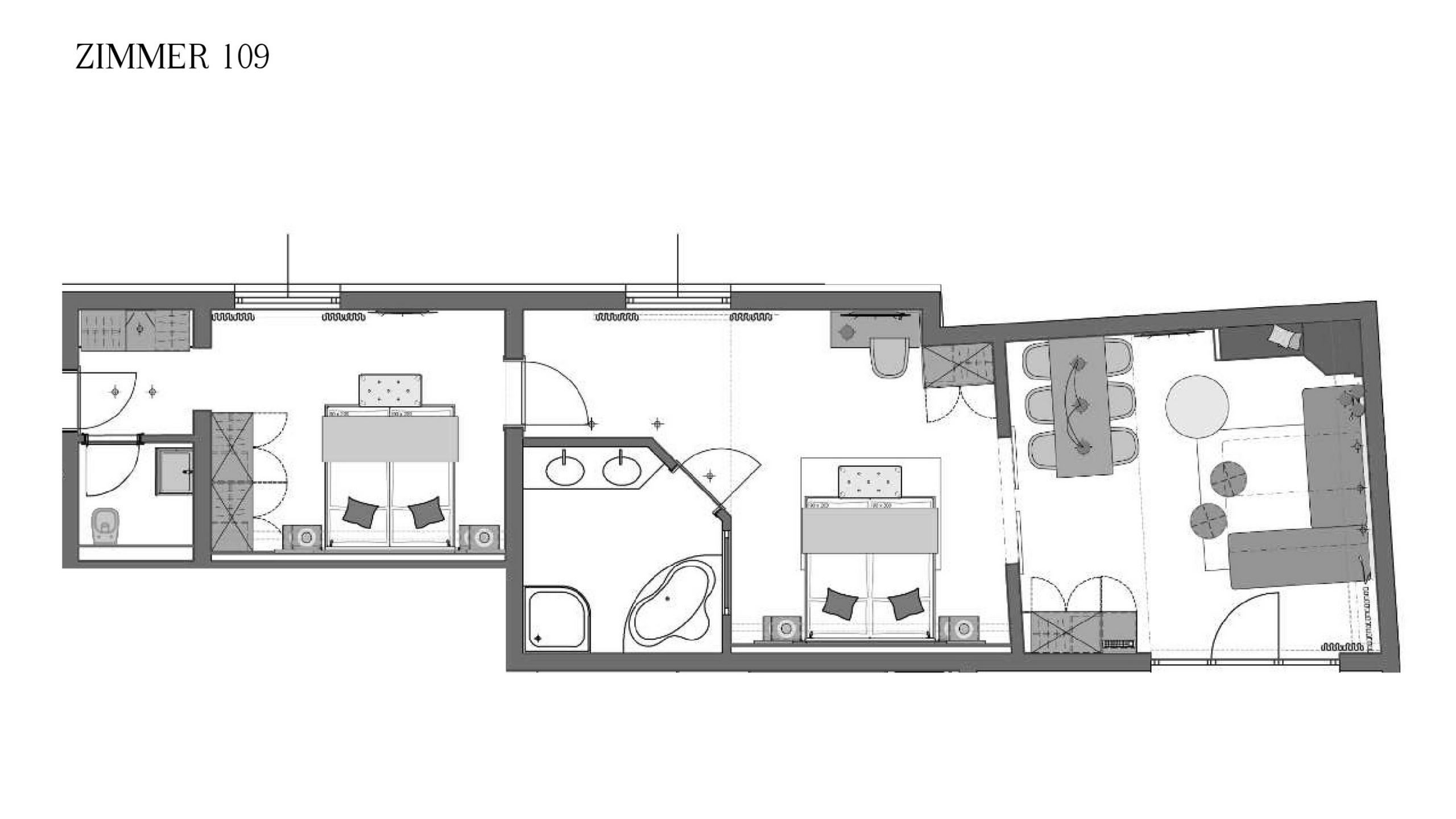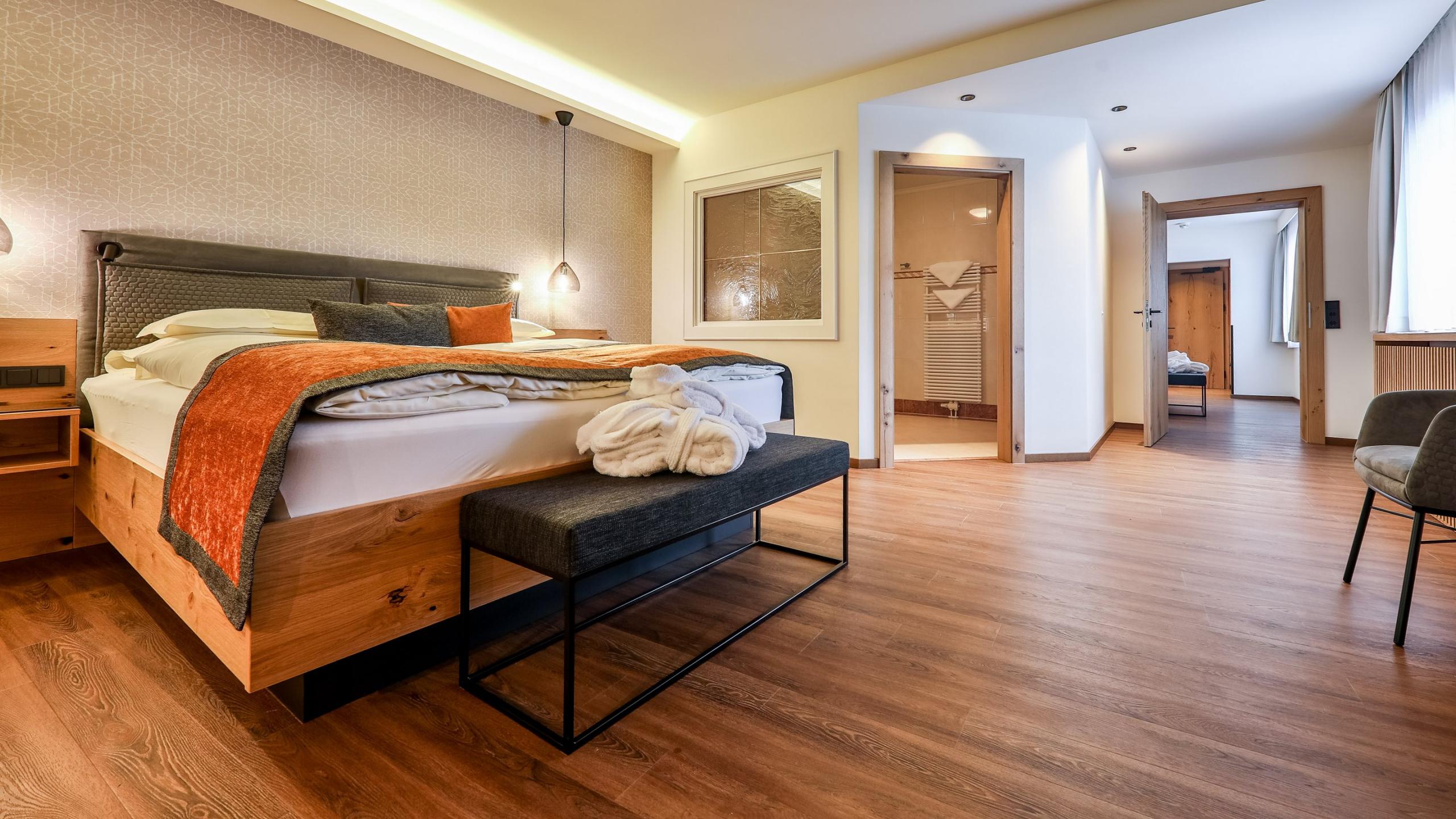 Studio de luxe mit 2 Schlafzimmern, großer Wohnlandschaft und Balkon. Modern ausgestattet mit Holzboden, 2 Doppelbetten, Esstisch, Lounge, Kamin, Schreibtisch, Schrank und Tresor. Badezimmer mit Badewanne und Dusche, Schminkspiegel, Föhn und separatem WC. Mindestbelegung: 3 Personen (4 Personen während der Wintersaison)